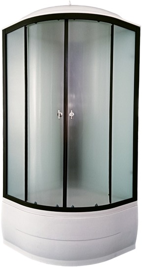 Сборка кабины без герметика! Передние стекла матовые, задние стенки СТЕКЛЯННЫЕ белые, черный алюминиевый профиль, черная задняя панель, полукруглый высокий поддон 45см + верхние - поворотные ролики с регулировочным винтом, нижние - поворотные ролики с кнопкой; нажимной сливной клапан с системой очистки (сеткой); с полкой на задней панели.