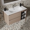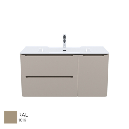 Два выдвижных ящика с механизмом плавного доведения, одна распашная дверца.