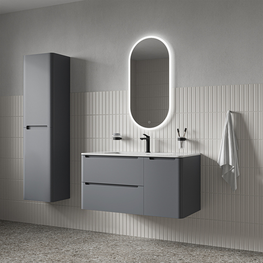 Фасад МДФ 19 мм в матовой эмали (окрашен с двух сторон): темно-серый фрезеровка.