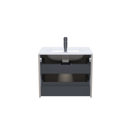Два выдвижных ящика с механизмом плавного доведения, одна распашная дверца.
