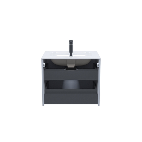 Два выдвижных ящика с механизмом плавного доведения, одна распашная дверца.