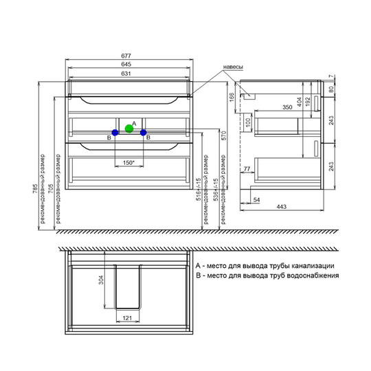 Размер умывальника: 710*465*835 мм