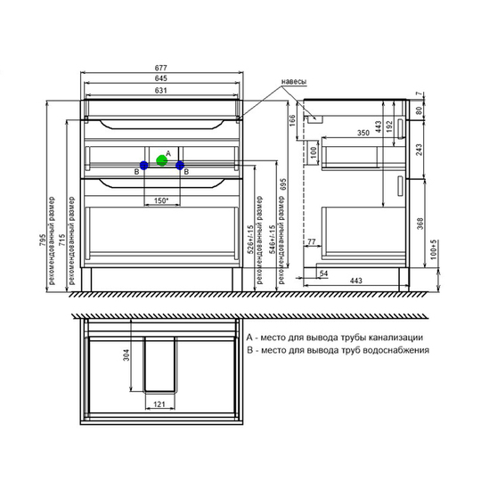 Размер умывальника: 710*465*835 мм