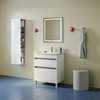 Материал фасада – МДФ с покрытием ПВХ-плёнкой, материал боковин – влагостойкий ЛДСП. Такое качественное исполнение обеспечит долгий срок службы мебели во влажном помещении ванной (при соблюдении рекомендаций по уходу).