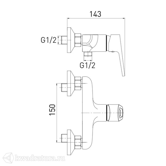 Аксессуары: Лейка для душа 1-режим, шланг для душа усиленный 1,5 м, настенный держатель лейки